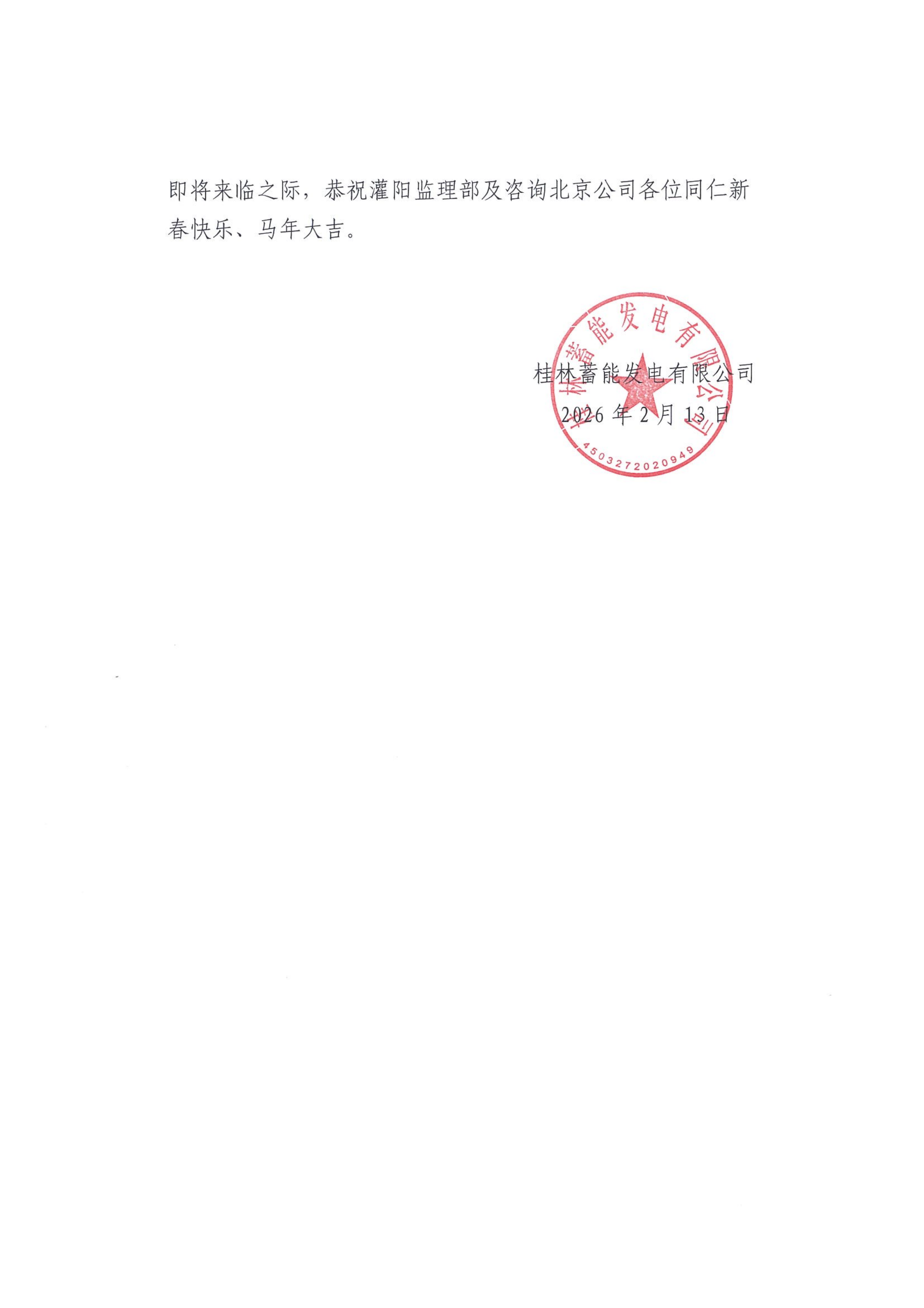 骏马奔腾迎新春,宏图大展气象新。2月14日,临近春节之际,灌阳监理部收到了桂林蓄能发电有限公司(灌阳项目建设单位)发来的感谢信,来信对灌阳监理部在上水库导流洞不利地质段安全隐患治理中的“主动担当、高效协同、严督实导” 的工作作风予以高度赞誉,并传达了对咨询公司及灌阳监理部全体员工一直以来的大力支持表示由衷感谢,同时祝愿监理部及咨询北京公司各位同仁新春快乐、马年大吉! 2026年1月30日,灌阳监理部副总监张红伟、安全总监高元太在现场检查发现,灌阳抽水蓄能电站上水库导流洞K0+175~K0+180段左侧边墙喷混凝土局部出现鼓包、开裂等现象,并第一时间向业主、设计反馈,副总监陈冬瑞立即组织参建四方进行现场查勘,商讨处理方案;2月4日,总监邢军组织参建各方召开专题会,快速、科学地明确了处理方案,并督促水电十二局对不利地质段进行抢险;最终于2月13日,在参建各方共同努力下,现场克服低温天气、春节施工人员流动性大等困难,导流洞K0+175~K0+180不利地质段安全隐患已按设计方案顺利完成施工,保障了春节后3月初能够按期完成上水库截流目标。 灌阳监理部将以此次感谢信为契机,持续发扬公司“严格监理 热情服务”的企业核心价值观,以高标准、严要求践行监理职责,不忘初心、砥砺前行,发挥灌阳监理部建设队伍的凝聚力和各监理人员主动作为、敢于担当的责任感,严把工程质量与安全关,以优质服务为灌阳项目高质量推进保驾护航。 工程咨询公司/工程经济中心 高元太 供稿